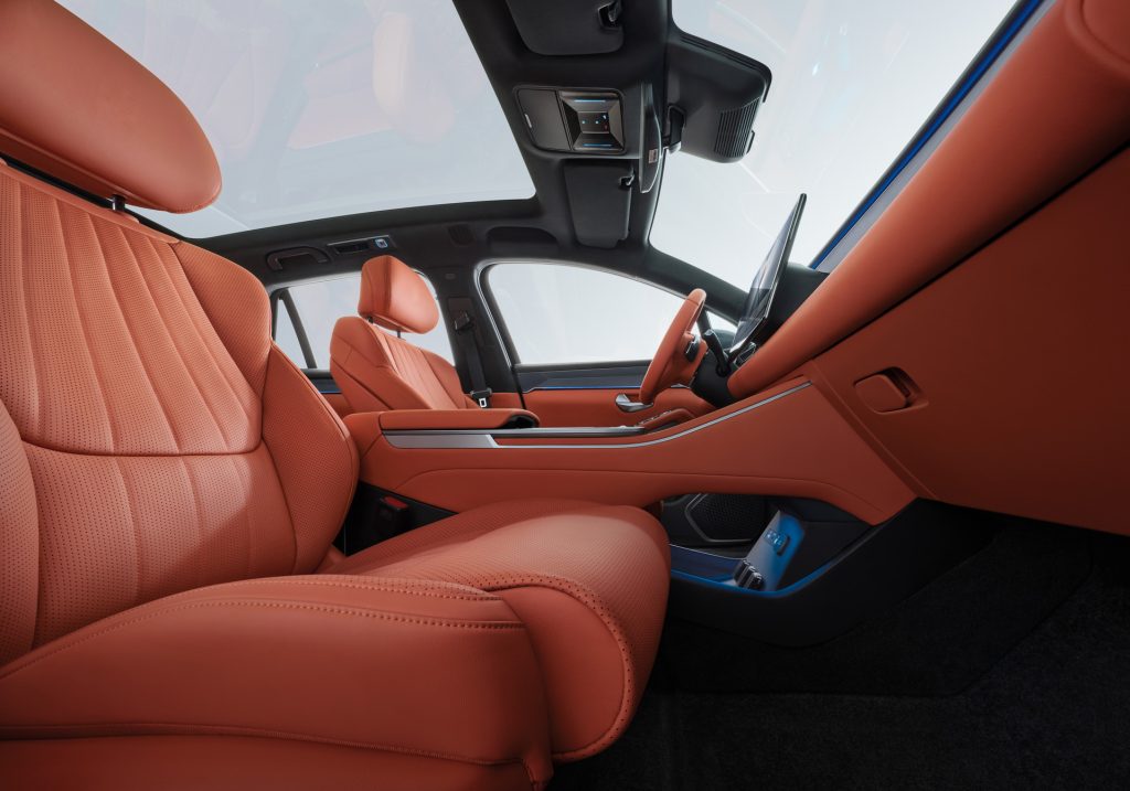 That means a 10.25-inch instrument panel, a 15.6-inch UHD central screen, and a 26-inch head-up display in the way of screens. You can add heated, ventilated, and massaging seats in both the front row and the two outer seats in the second row, which are also leather-clad.