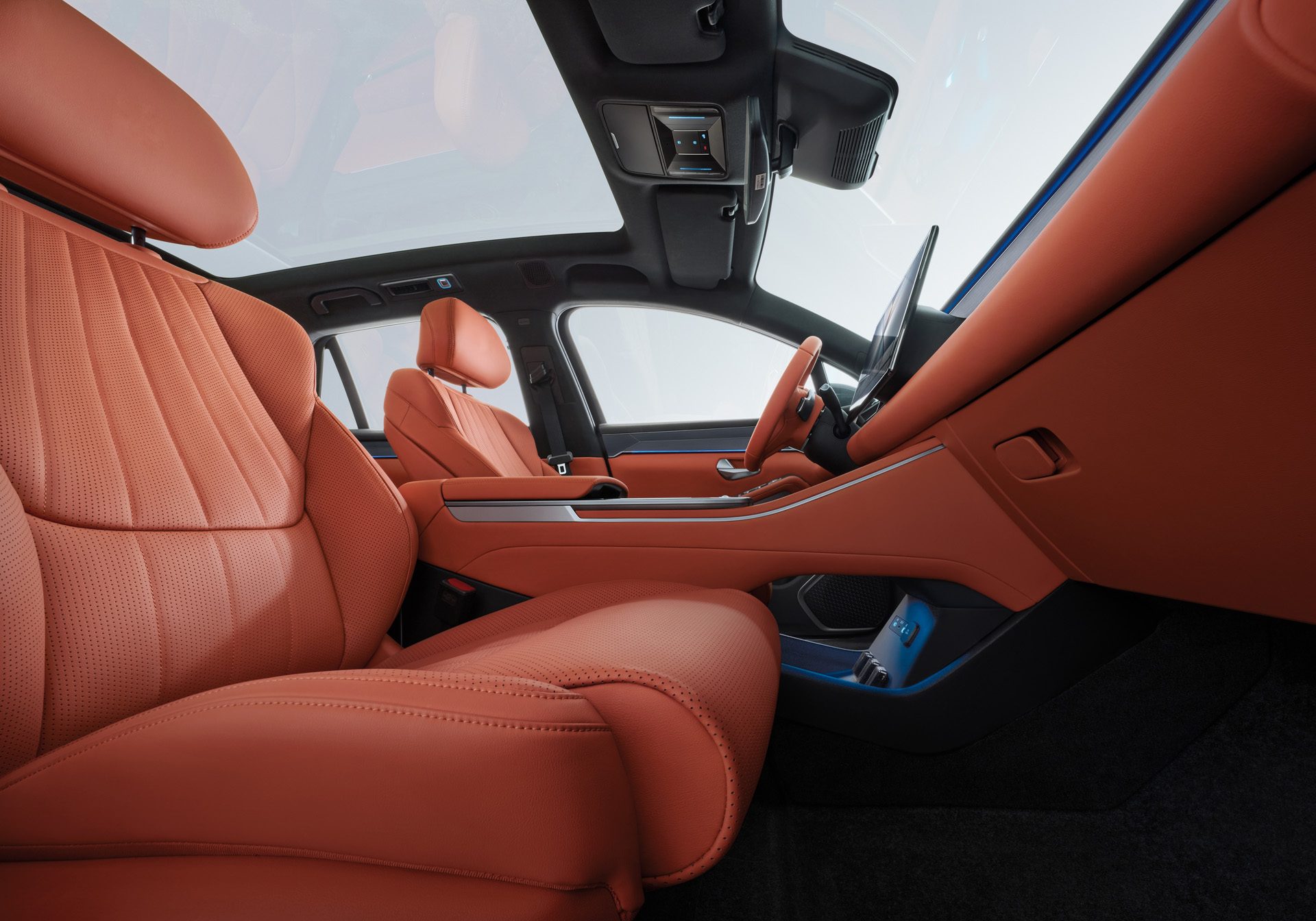 Audio is delivered through no fewer than 21 speakers, and there’s a heated steering wheel, ambient lighting, a 50W vented wireless charger, a fragrance system and a large panoramic roof with built-in electronic sunshade.