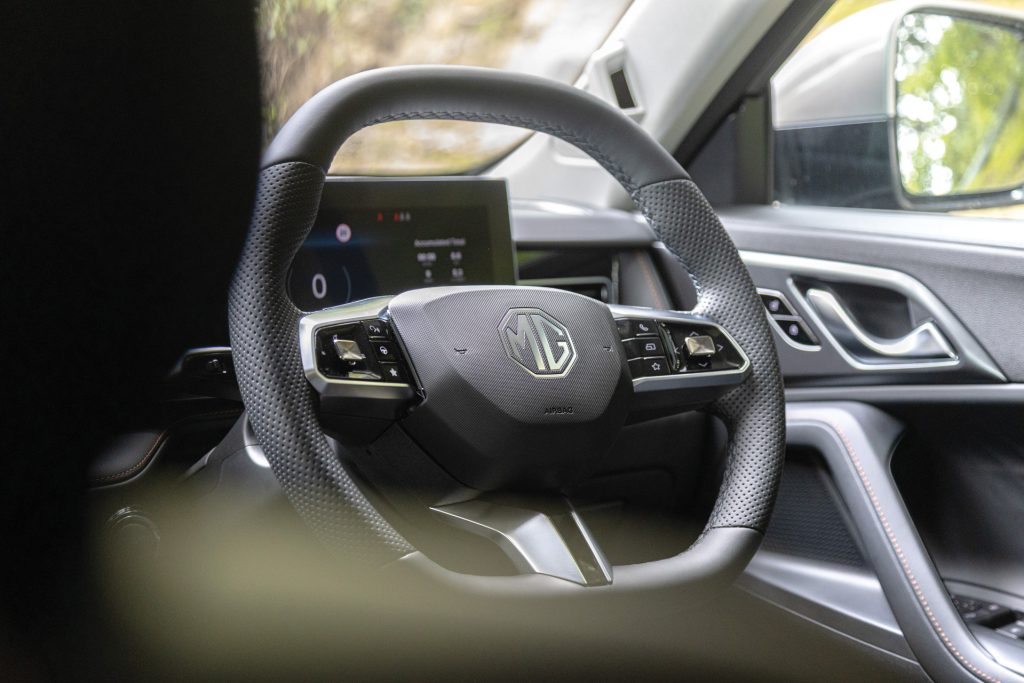 This HS hybrid has a 146kW/340Nm traction motor, and with a 105kW/230Nm 1.5T, blending through the hybrid trans, MG quotes system output at 165kW/340Nm. With a strong motor and a 1.83kWh battery, this delivers genuinely decent engine-off driving for a self-charging hybrid.