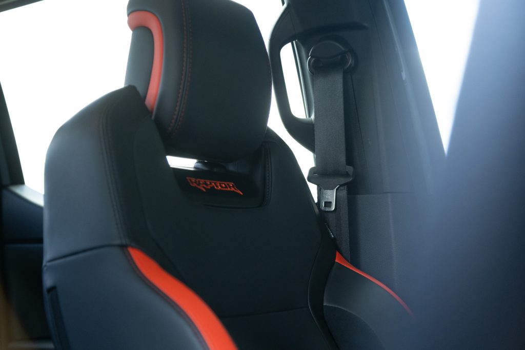 What’s impressive is how comfortably the chassis handles the added energy. The Raptor feels well balanced while its long-travel suspension soaks up punishment without making it feel loose. The turn-in is confident though you’ve got to be measured in terms of how hot you enter a bend. Go in too heavy and the front end grip washes away, although it’s quick to let you know. It’s quite outstanding given the rubber has been picked more with off road work in mind. And a brief throttle lift is all that’s needed to get it quickly back online and settled as you bury the gas to power out of the turn. In Auto 4WD, it digs in and drives out of corners with authority. Given its turn of pace down the straight and the need to temper that velocity for the corners, the brakes get a workout and exhibit some heat fade after a spirited run; a set of meatier pads would likely sort that.
