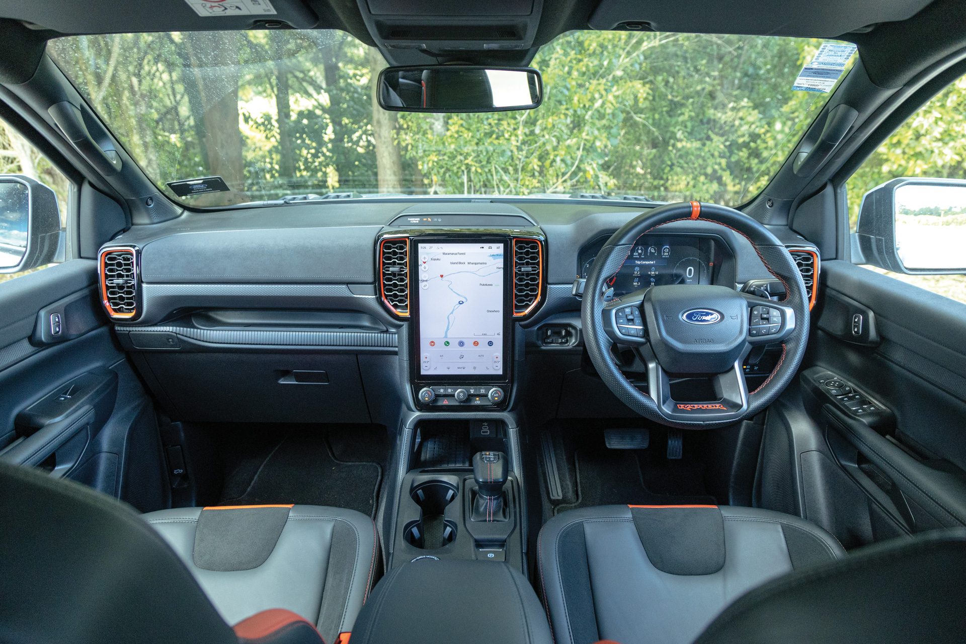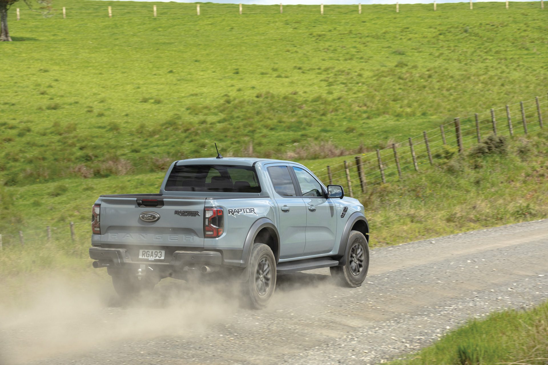 But you really have to give it a burst on a gravel road, which is where Raptor really does come into its own. Select Baja mode for the full effect of the suspension and barking exhaust, and let it go wild. Clicking it out of the default 4WD high and into rear-wheel drive mode ensures maximum fun factor. While the traction control is switched out, the stability control still lingers in the background for when that slip angle gets a little too loose and it gently brings it back into line. It dances along rutted gravel roads, the suspension soaking up hits that would rattle most utes to bits. The steering is accurate and communicative enough to remind you what those chunky tyres are up to, and the sheer grip on loose stuff is astonishing. It’s a riot, and bloody impressive.
