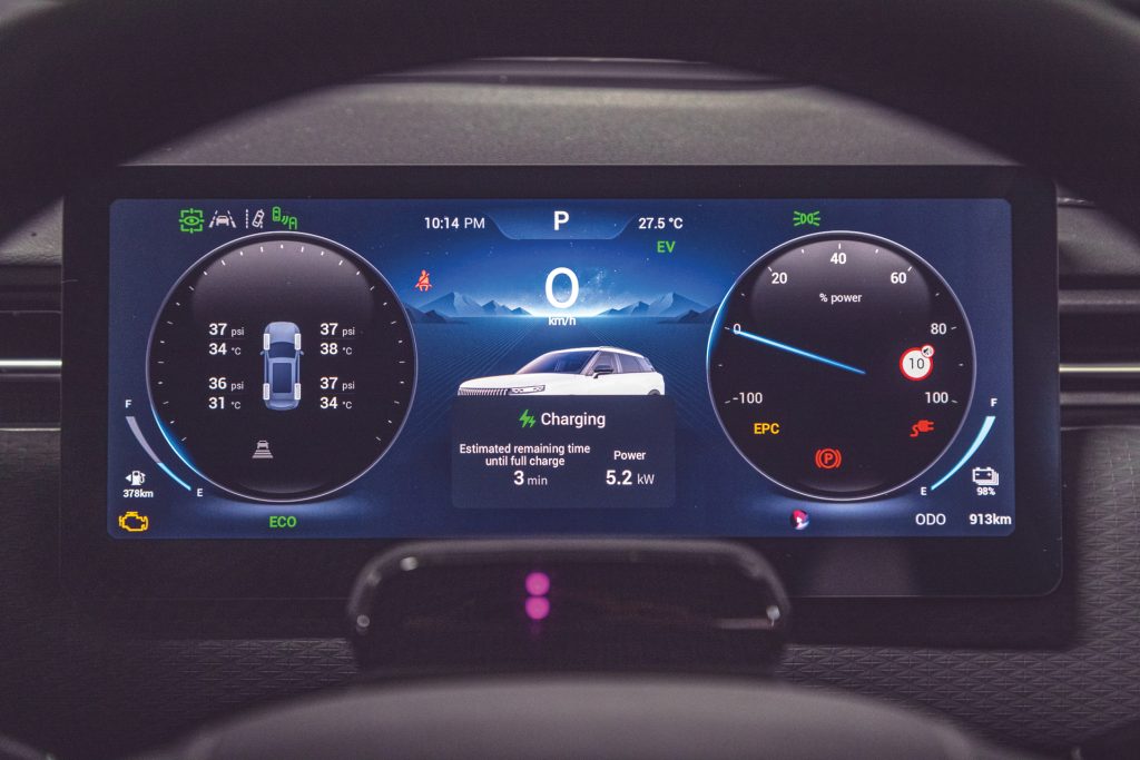 We used the J7 as an EV over the weekend, tooling around town, and fuel use sank as low as 1.9L/100km. Back on the open road and the battery eventually ran down to its 30 per cent minimum whereupon the engine then goes about keeping it there. You can also hold charge for later use if you want. Alternatively, if you’re down to 30 per cent and need to rejuice the battery you can do that on the go. But expect fuel economy to suffer, with a figure in the 9s for us. Fortunately, it runs on 91ULP, and you won’t have to do this often. However, it doesn’t take long to get back to 80 per cent, roughly an hour of open road running. Not ideal of course. But just saying, it is possible.