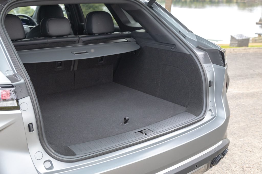 While it’s a big SUV, there’s not a lot of boot space. The 660 litres quoted is measured to the roof, but with its sloping tailgate and a high-set floor, the hold is average for the 9’s overall size. The seats fold flat to increase space and, being a hybrid with a battery out back, there’s no spare wheel.