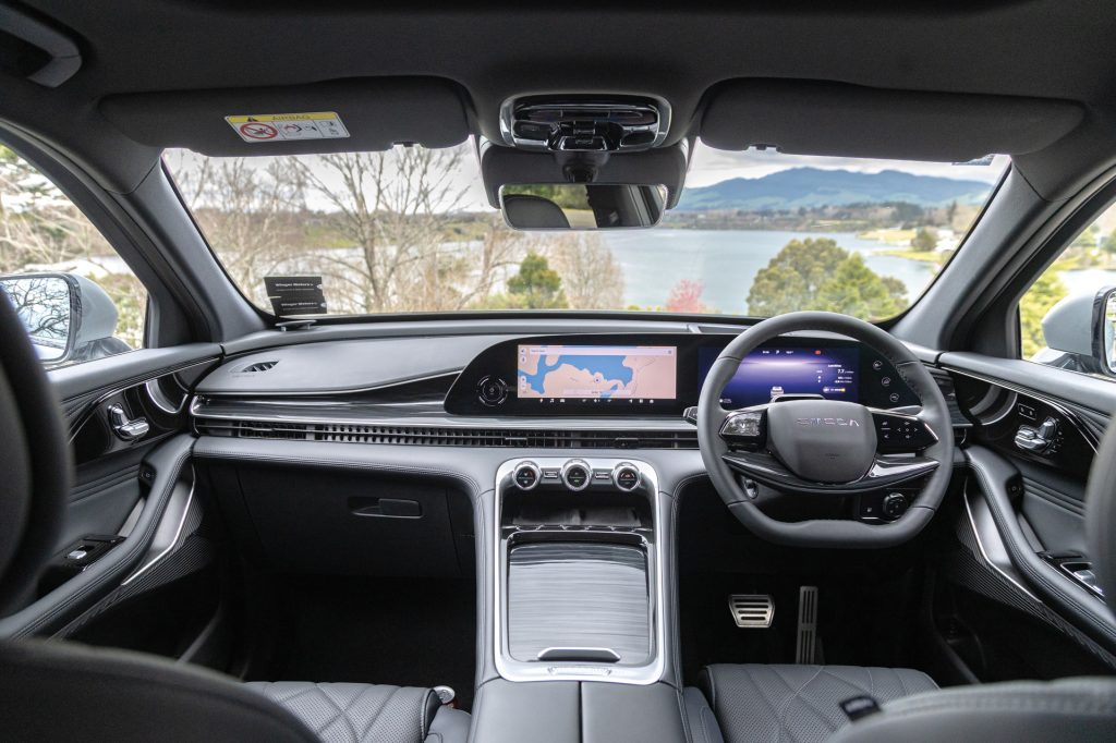 The 9 is another super hybrid, with both a big range and a hefty total output. With three electric motors and a 1.5T engine, the Omoda 9 can call on some 395kW of combined power, while a 34kWh battery gives it 169km of EV range. Truth is, you only get that big output when you’re in the right drive mode, with a sufficiently charged battery. And we didn’t quite manage to get that far on battery power alone either.
