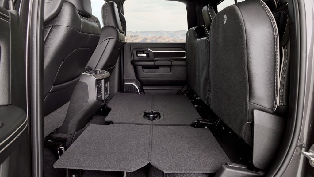 This is all in addition to the massive internal storage space offered in this Ram. The centre console is basically chilly bin-sized, and the rear seats fold back to reveal a storage bin, as well as a folding platform that provides a large flat space.