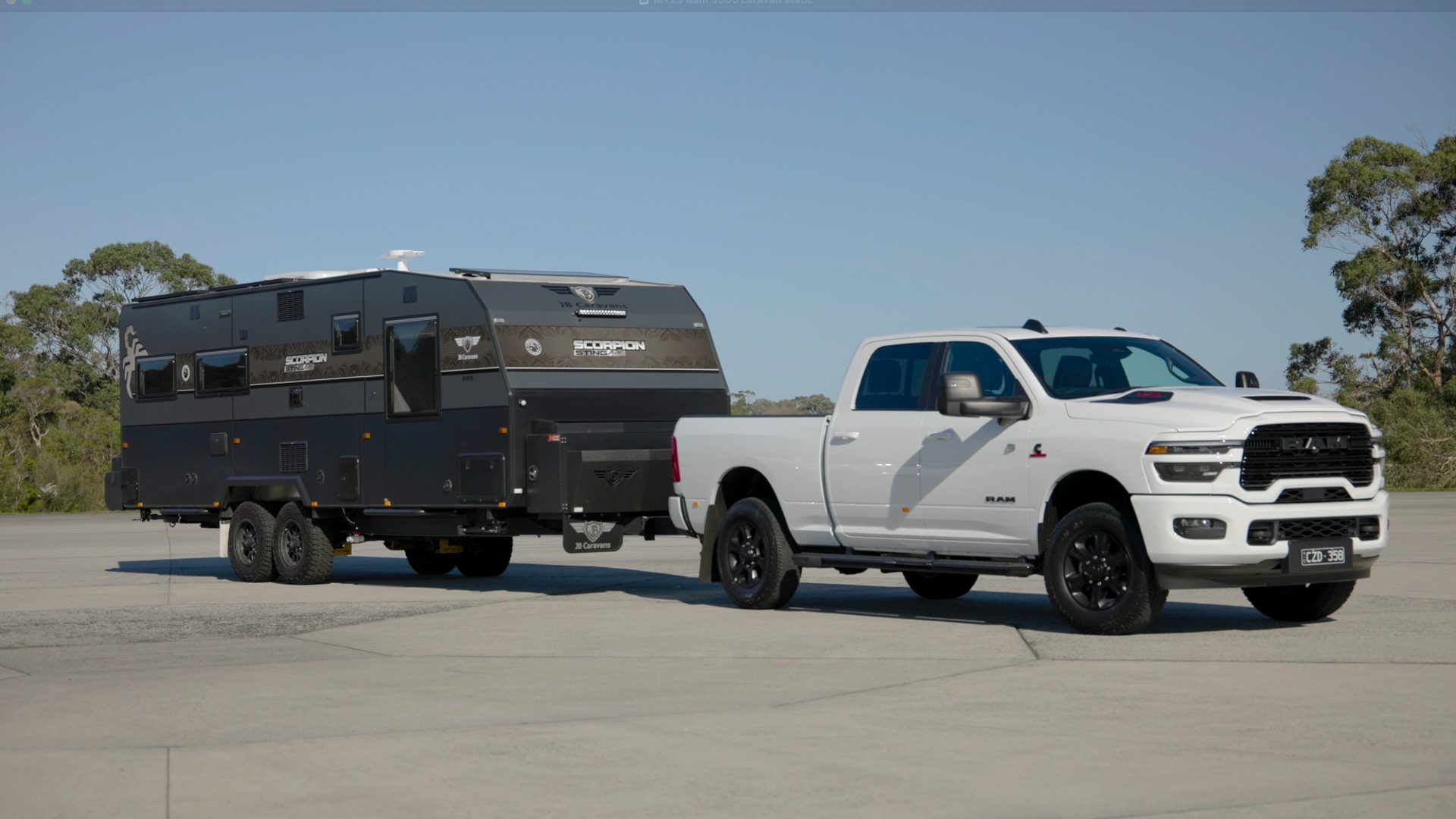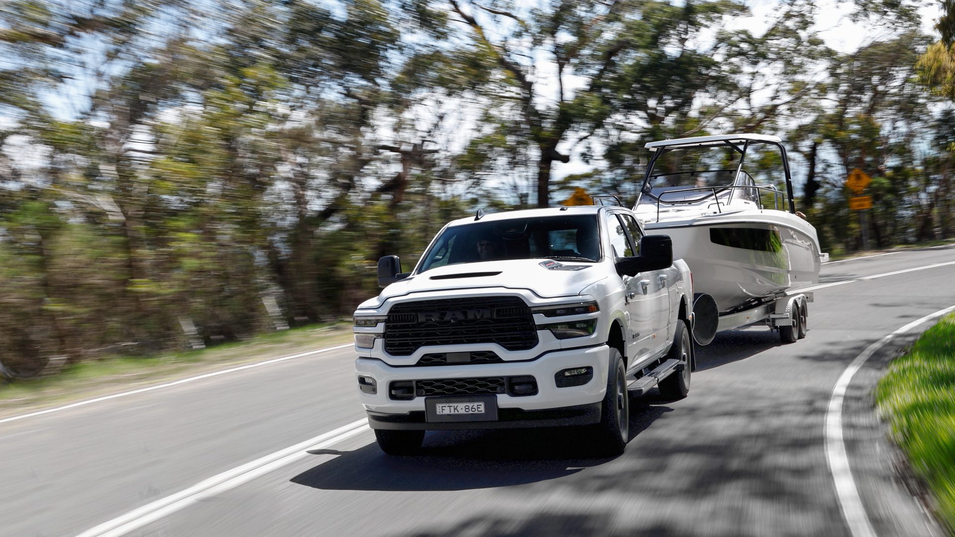 To get a feel for the ride with a load, a Ram 3500 was hooked up to a large overlanding caravan that weighed 3.5-tonnes. Surprisingly, the performance changes with this weight at the rear weren’t significant, and if anything, the ride was only improved. Despite a lack of self-levelling equipment, the Ram kept its composure remarkably well on the road, and at speed around the road course.