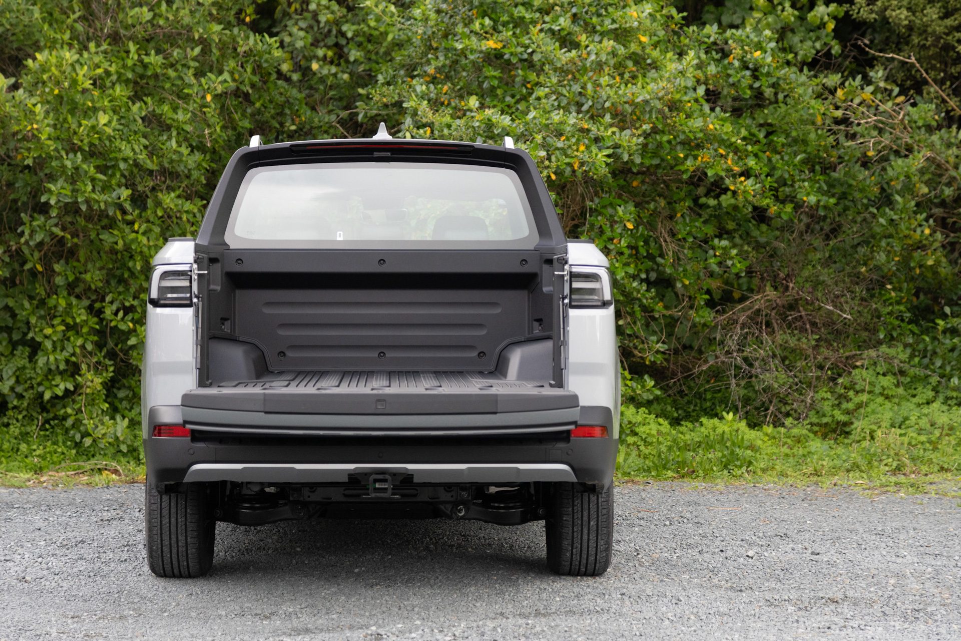 Pictures don’t do the proportions justice. At 5.26 metres long and 1.9 metres wide, the Riddara is every bit the full-size ute. The front end carries a solid-panel “grille” lit by a full-width LED bar spelling out RIDDARA in glowing letters. It’s a bluff, futuristic face, though some may prefer the more conventional Chinese-market version, no doubt a swap via AliExpress will be popular. Under the bonnet sits a 70-litre front trunk (frunk), ideal for stashing tools or groceries away from the weather, something utes never normally offer.