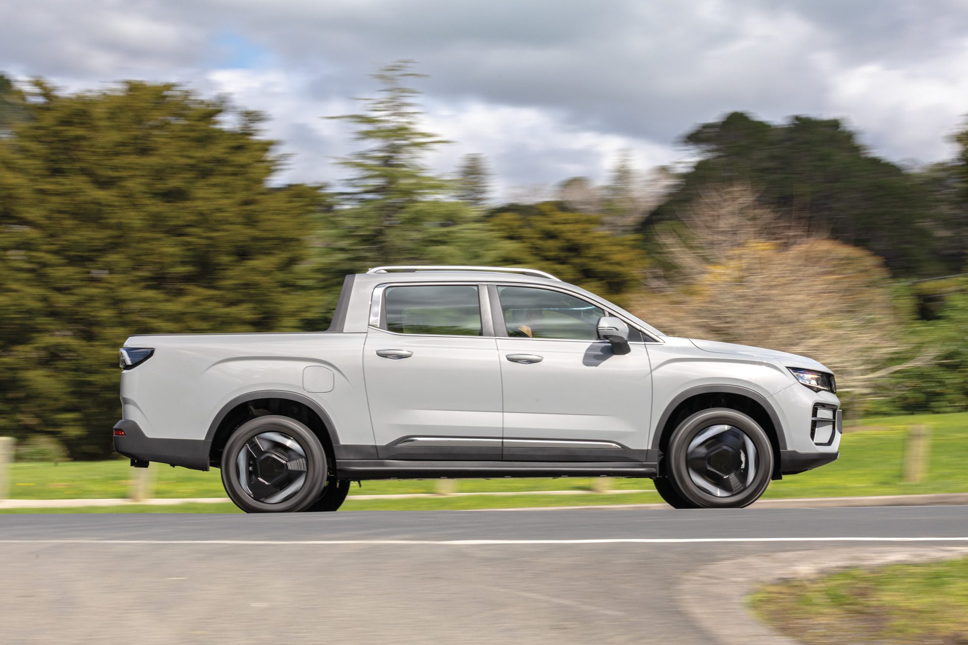 Out on country roads it feels nothing like a truck. The steering is accurate, body control tight, and brake pedal natural despite regeneration. Only the occasional thud over coarse bumps reminds you there’s a tray out back. Geely’s Scandinavian chassis team clearly earned its keep. Driving around town, the Riddara’s instant torque and single-speed smoothness make it a joy. One-pedal driving is available via three regen levels. Visibility is good, turning circle tight thanks to electric steering and NVH levels low. There’s no diesel rattle, no gearshifts, just a faint whine as it spools up. At 2205kg it’s around 400kg lighter than a Shark PHEV, which helps efficiency and ride.