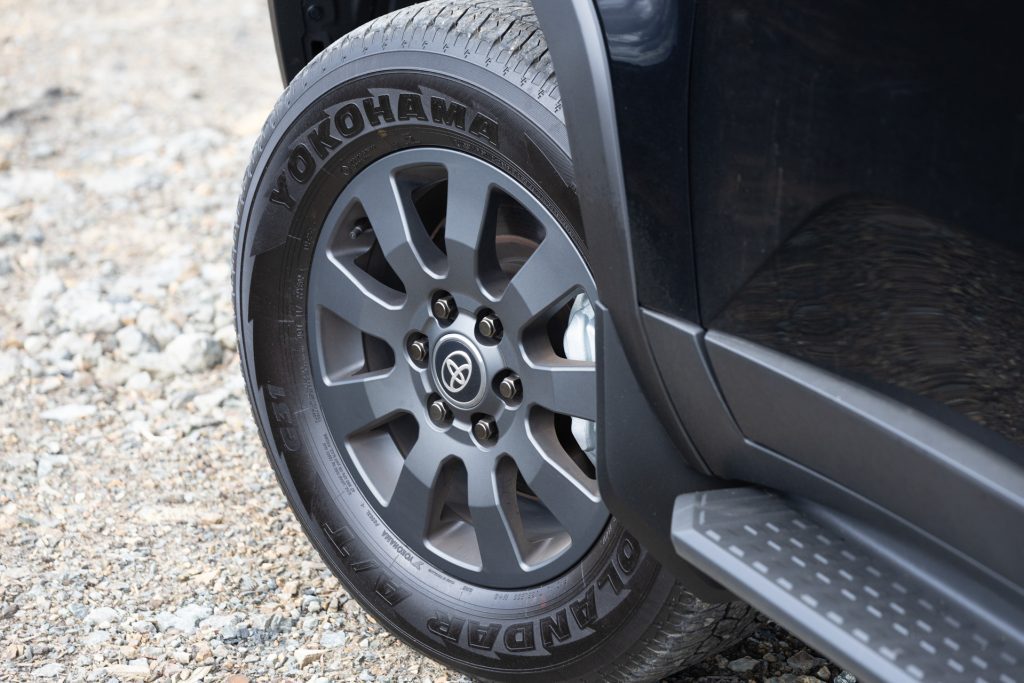 This Adventure version sits alongside the VX Limited as the more ‘adventure ready’ range topper, and looks up for it in an off-road sense with dual-purpose Geolander rubber, and running boards. Its sticker price is $103,990 for this five-seat version.