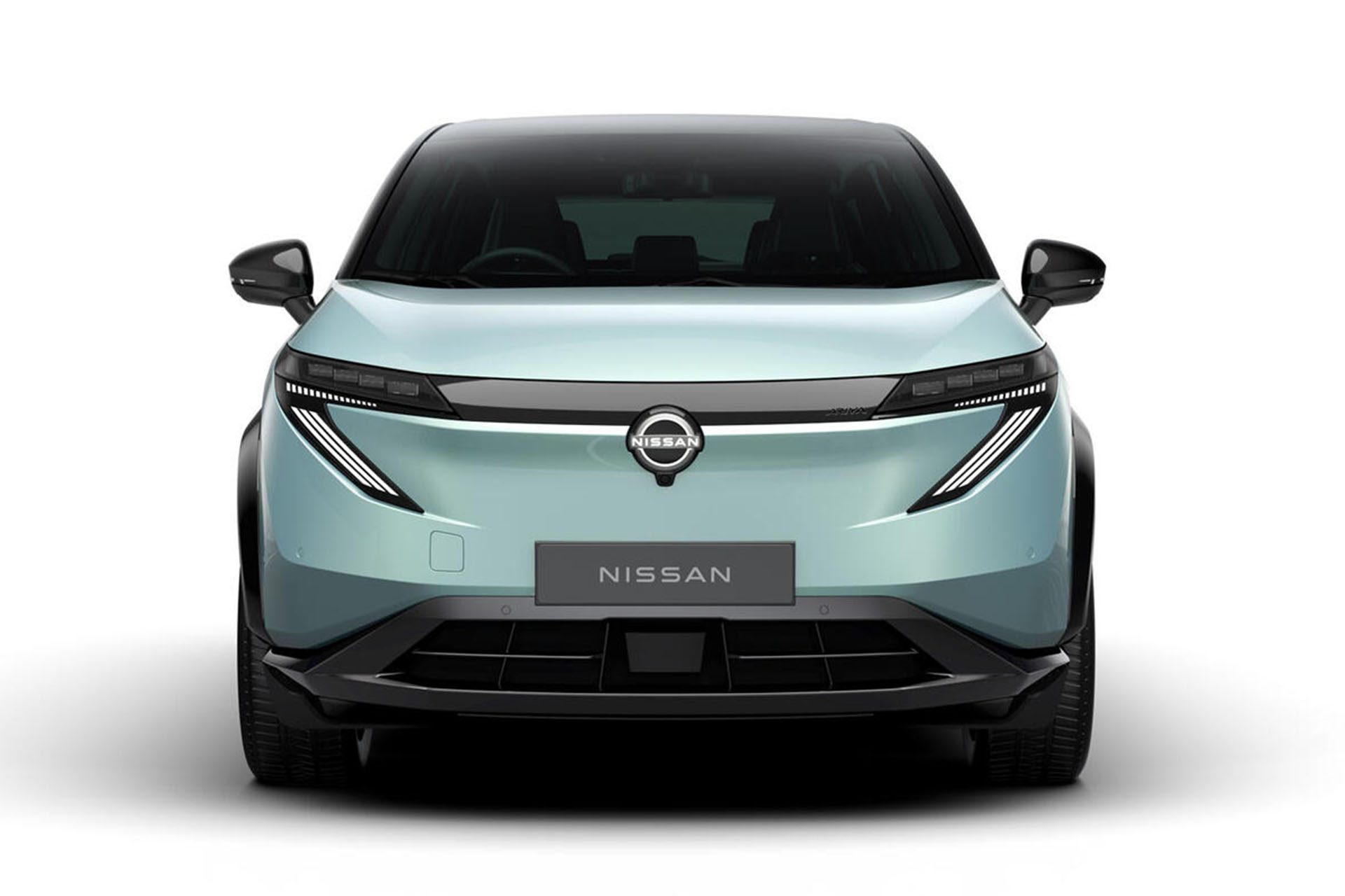 The Ariya’s first major update since its 2022 debut introduces a more minimalist front end. The large black panel that framed the original model’s nose is gone, replaced by a smoother design that highlights a back-lit Nissan badge. New curved daytime running lights with a three-stripe signature replace the previous angular units, while the side intakes have been deleted entirely for a sleeker, more aerodynamic face.