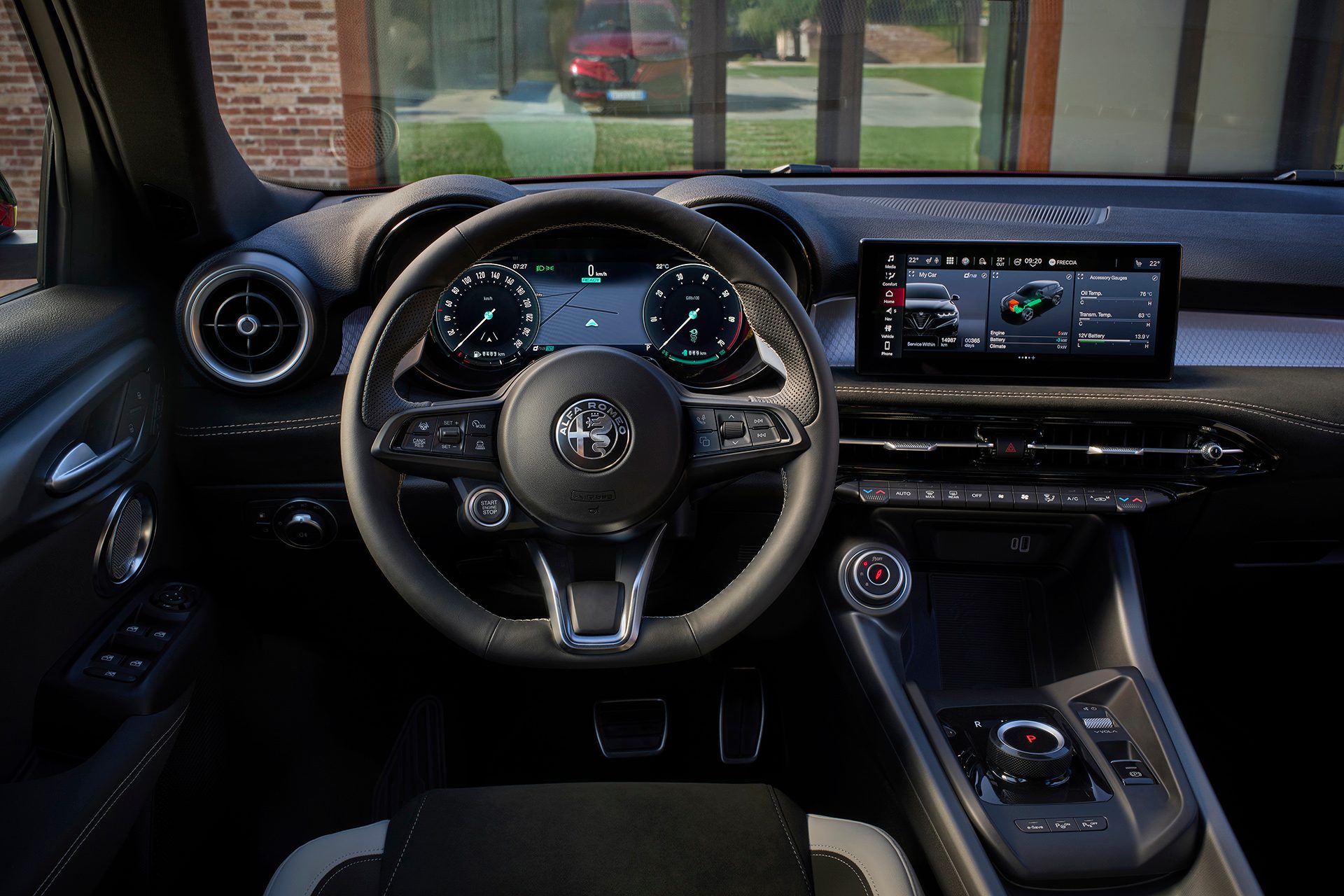 The engine range starts with the Ibrida, a 1.5-litre turbocharged hybrid producing 130kW and paired with a 7-speed dual-clutch gearbox driving the front wheels. At the top sits the Q4 Ibrida Plug-In, which combines a 1.3-litre petrol engine with an electric motor for a total output of 200kW and gains all-wheel drive. The hybrid system has been refined for smoother, more linear transitions between petrol and electric power, says Alfa, while the chassis’ wider track is claimed to reduce roll and understeer for sharper cornering.