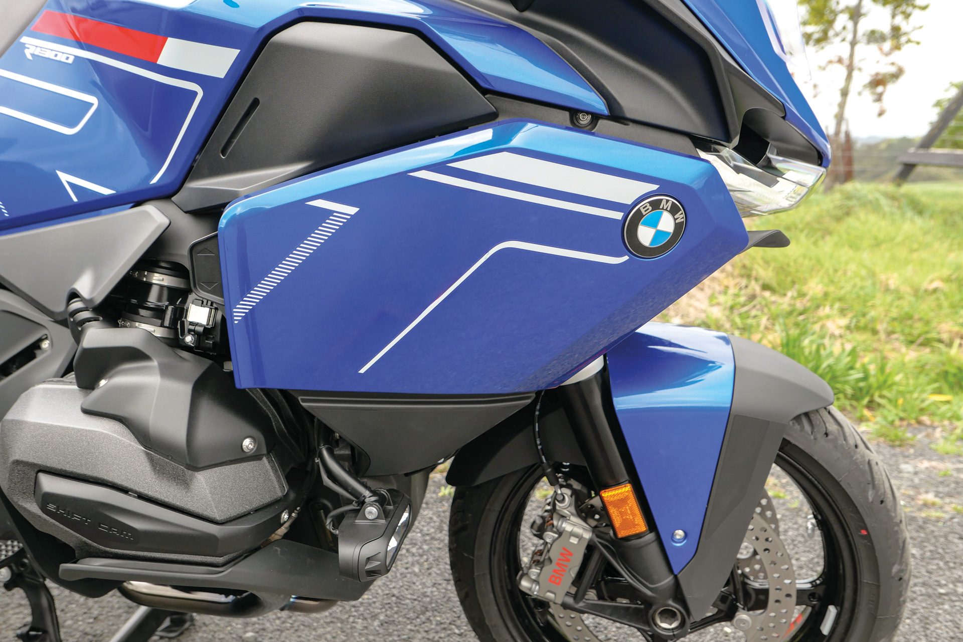 It uses the same funky shift-cam 1300cc engine as the adventure bike. That pulls heroically in the lower registers, there’s 149Nm on tap, and winds up to around 9000rpm, the extra urge evident from 4500rpm or so. Bank on 107kW to go with that. Up front is the firm’s Telelever suspension set-up (it’s like forks but with a single monoshock in behind) and a Paralever shaft drive system at the rear. The advantage of the former is minimal dive under heavy braking. That said, brakes are linked so front-end dive won’t be quite as evident anyway.