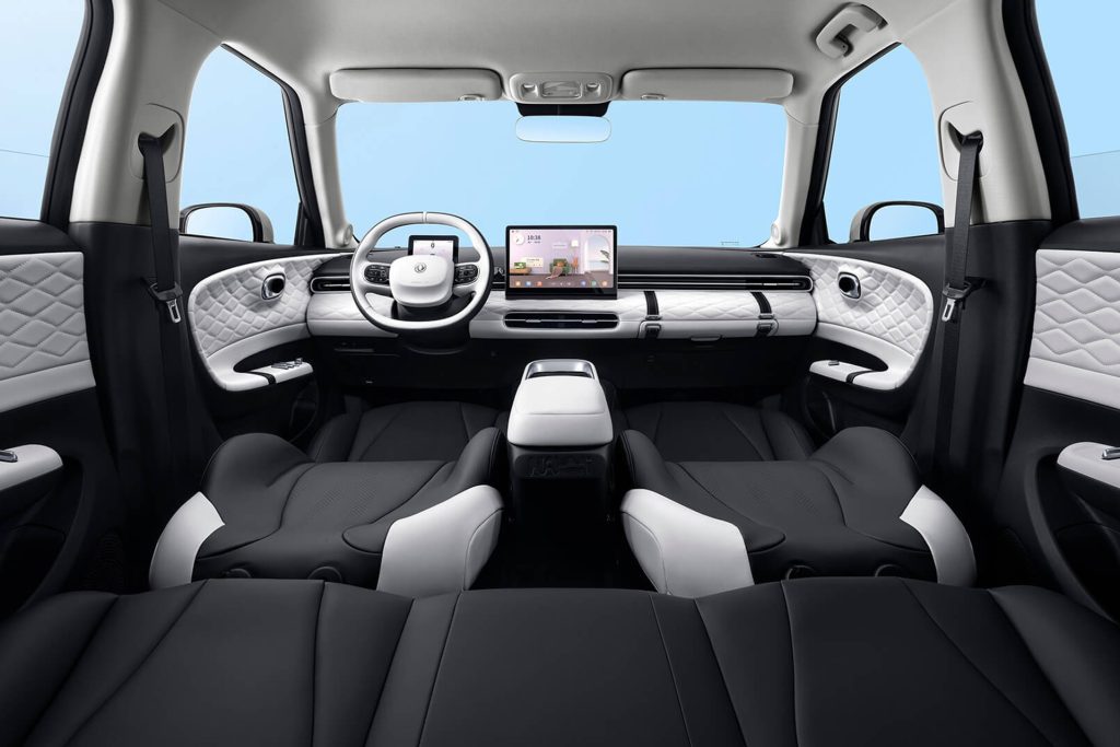 According to the Dongfeng global website, the Box has a battery capacity of 42.3kWh and a max speed of 140 km/h. Range is quoted at 430km but tested on the CLTC regime. Model highlights include “super cute” front styling, frameless doors and hidden door handles. The front seats come with a one-touch reclining mode, there are hidden storage compartments about the cabin and wireless phone charging features.