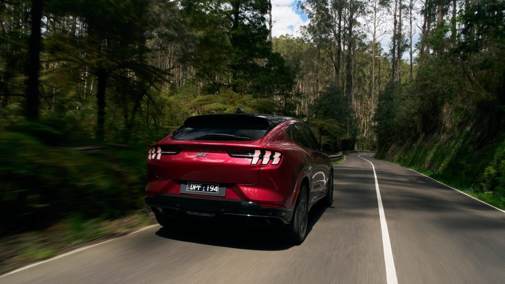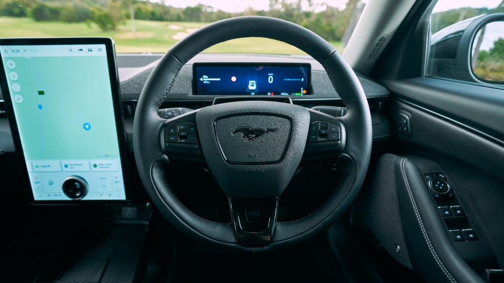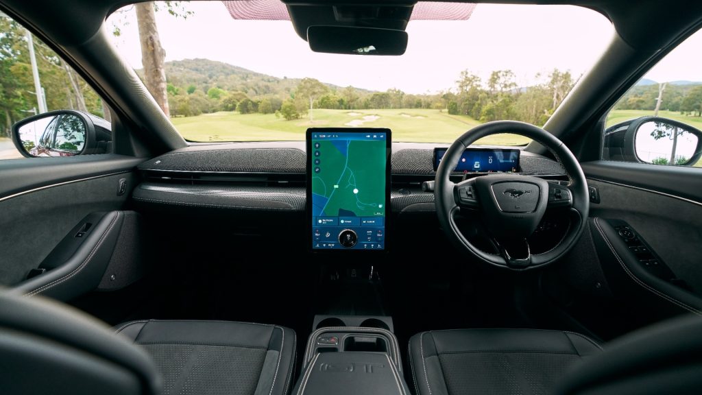 Charging specs remain at 150 kW DC and 11 kW AC, but Ford says the new heat pump and associated thermal upgrade allow the car to hold higher charging speeds for longer. In the GT the 10 to 80 per cent DC time drops from 45 minutes to 36 minutes purely through better temperature control.