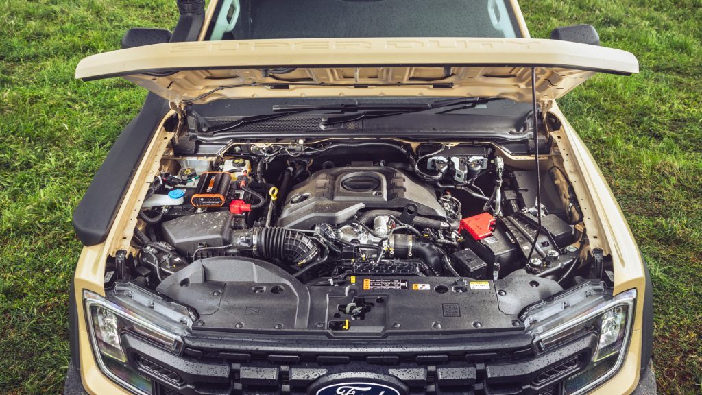 Beneath the bonnet, this Ranger Super Duty retains the same 3.0-litre turbo diesel V6 as the standard model. In this case, it has been de-tuned to 154kW to meet emission standards required for heavy vehicles. It requires AdBlue for this same reason.