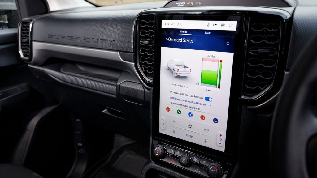 Arguably the coolest features lie within the screen, and are the Smart Hitch and Onboard Scales. Using ride height sensors, these functions show the driver exactly how much weight is being loaded on the tray with the scales, and the tow ball with the smart hitch.
