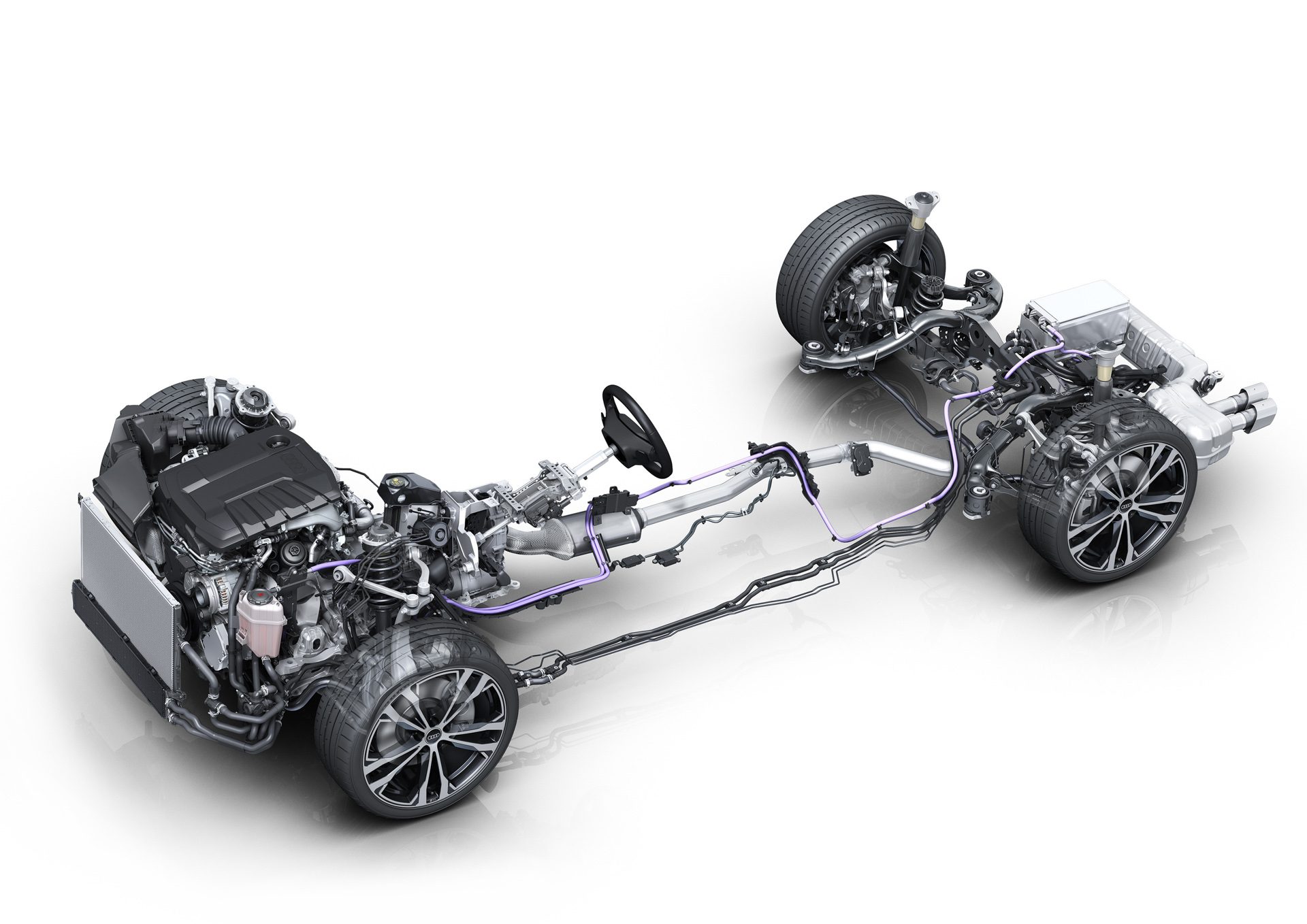 Under a low load, the engine can switch off and the electric motors alone can power the car. When more power is needed, the engine output is seamlessly added to the mix. With this system, the engine can directly power the wheels with fixed gear ratios too.