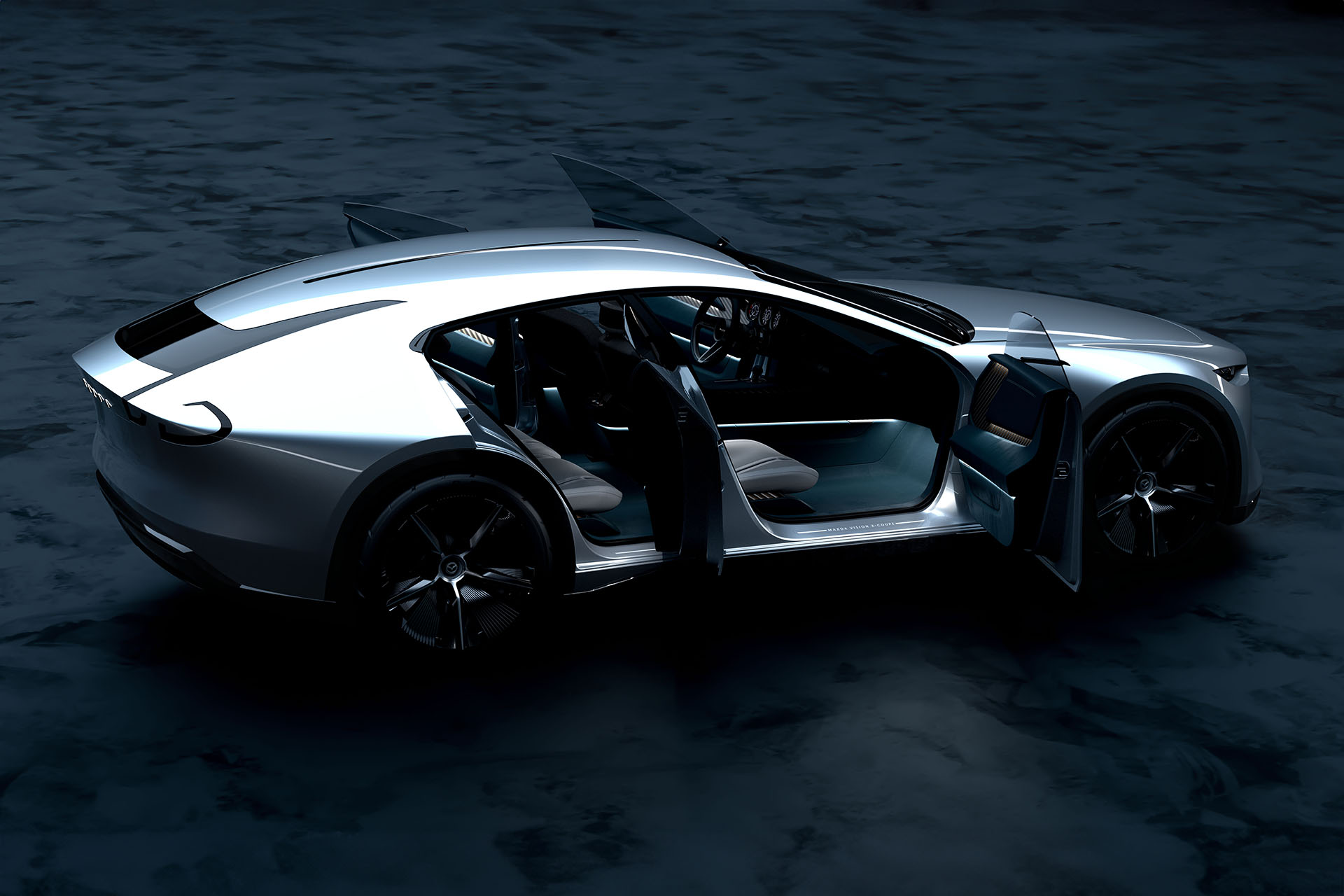 Measuring 5050mm long, 1995mm wide, and 1480mm tall, the concept is nearly as long as a CX-90 SUV but sits dramatically lower, giving it a muscular, grand touring stance. The long bonnet, sculpted haunches and minimalist surfaces represent the next evolution of Mazda’s ‘Kodo – Soul of Motion’ design philosophy, while the low-slung proportions and wide track hint at serious performance intent.