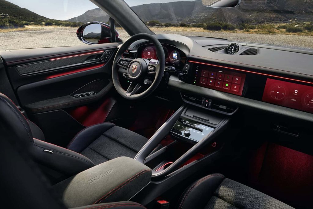 Inside, the Macan GTS features extended Race-Tex upholstery, black leather detailing, and 18-way adaptive sports seats as standard. Buyers can opt for a GTS Interior Package, available in Carmine Red, Slate Grey Neo, or Lugano Blue, coordinating the cabin’s stitching, seatbelts, and dashboard trim with the exterior paintwork.