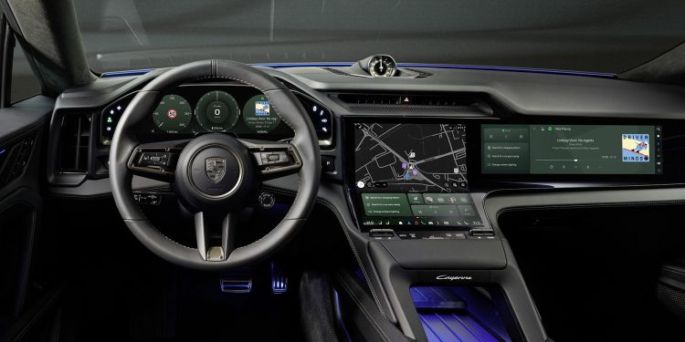 Porsche has revealed interior details of the upcoming Cayenne Electric. Central to the cabin is the new ‘Flow Display’, a touchscreen that curves at its base to integrate with the centre console.