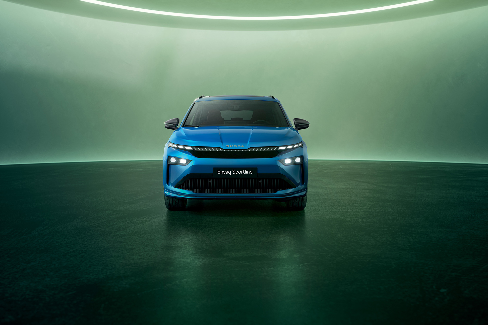 The Enyaq now adopts the same Modern Solid design language introduced by the Elroq, including a new ‘Tech-Deck Face’, a smooth, glossy black panel that hides the front radar and camera systems. Above it, a new LED Light Band adds vertical “eyelash” elements linking the upper modules of the redesigned Matrix LED headlights.