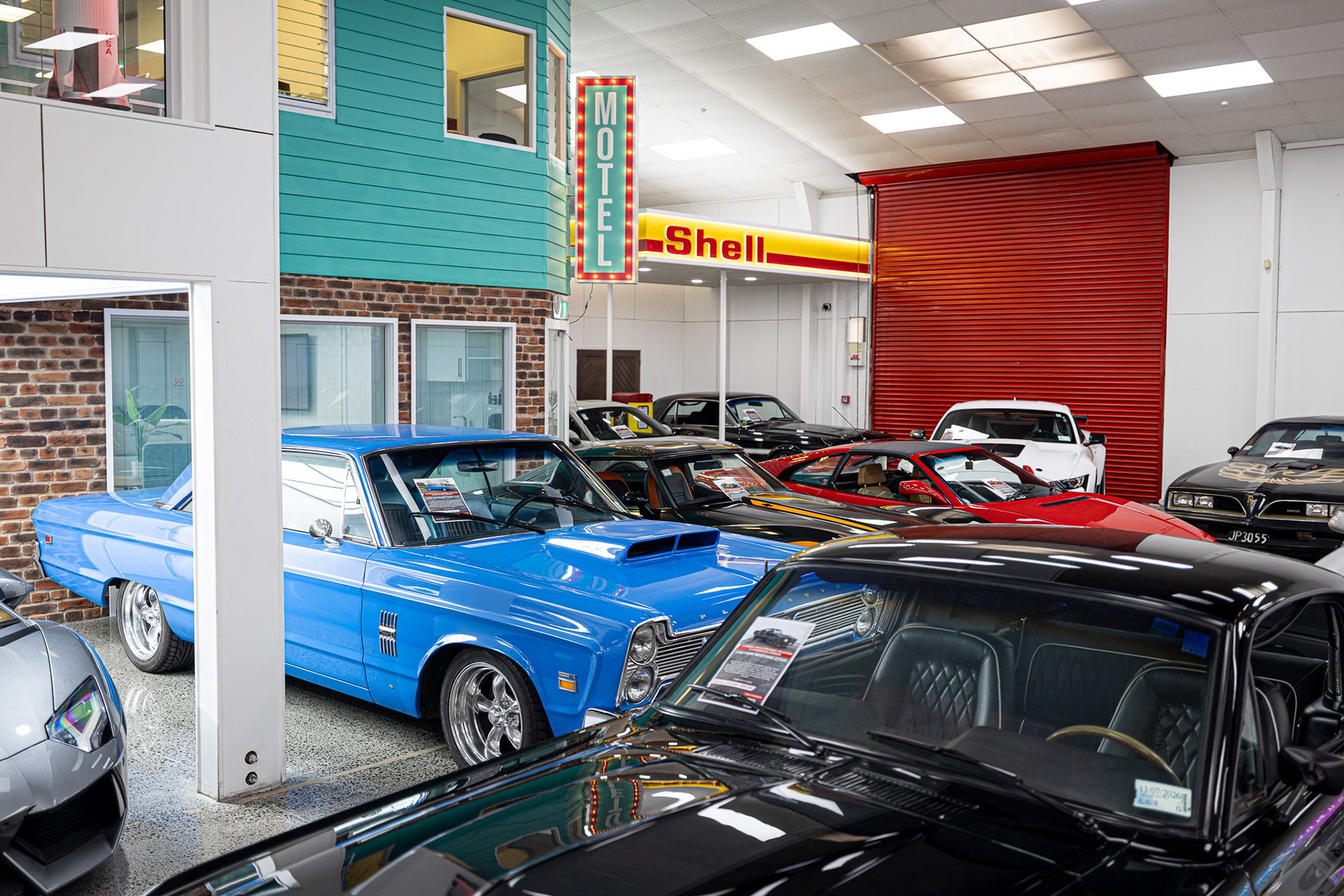 Visitors can expect a showroom more akin to a film set than a car yard they tell us, complete with a full-size helicopter from a Hollywood movie, a vintage Shell petrol station, a Las Vegas motel, and a New York-style sports bar.