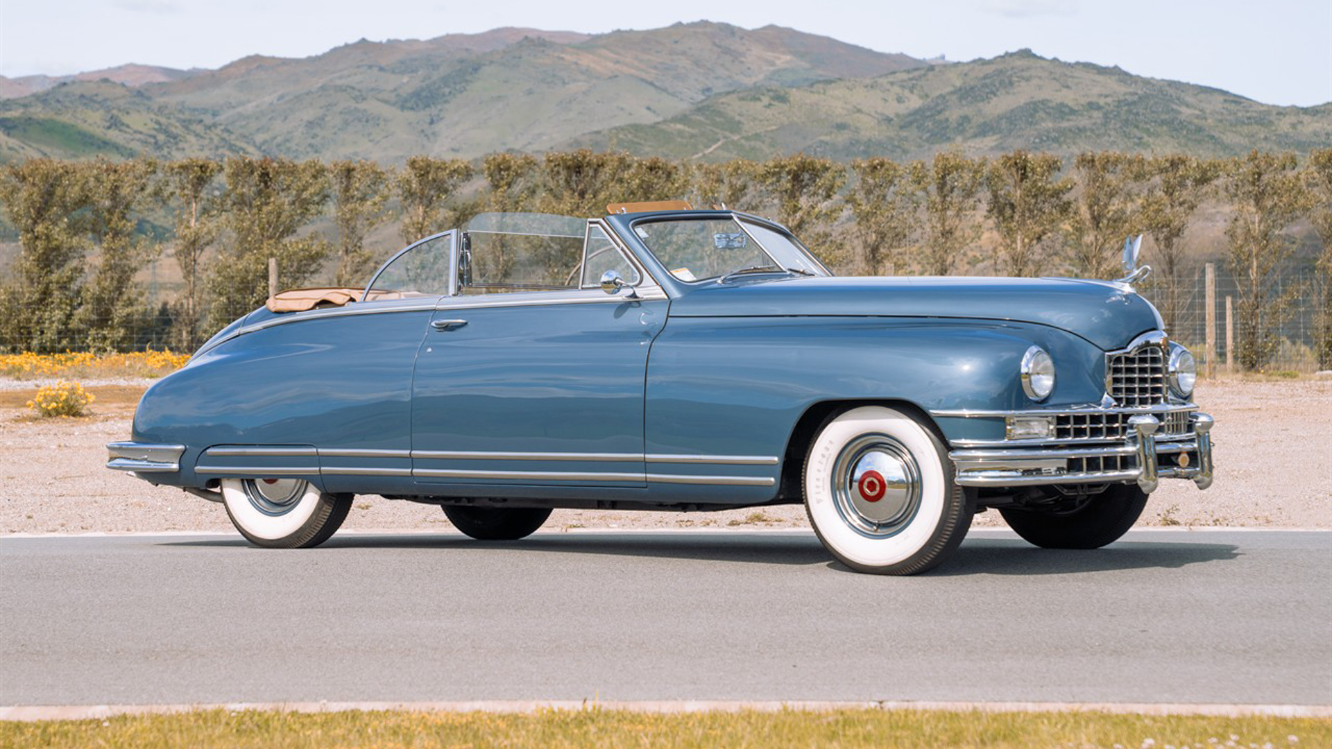 Highlights of this bunch include a pink 1956 Chevrolet Belair, a 1948 Packard Custom Eight Convertible Coupe, a 1939 Ford Roadster, and a 1956 Lincoln Continental.