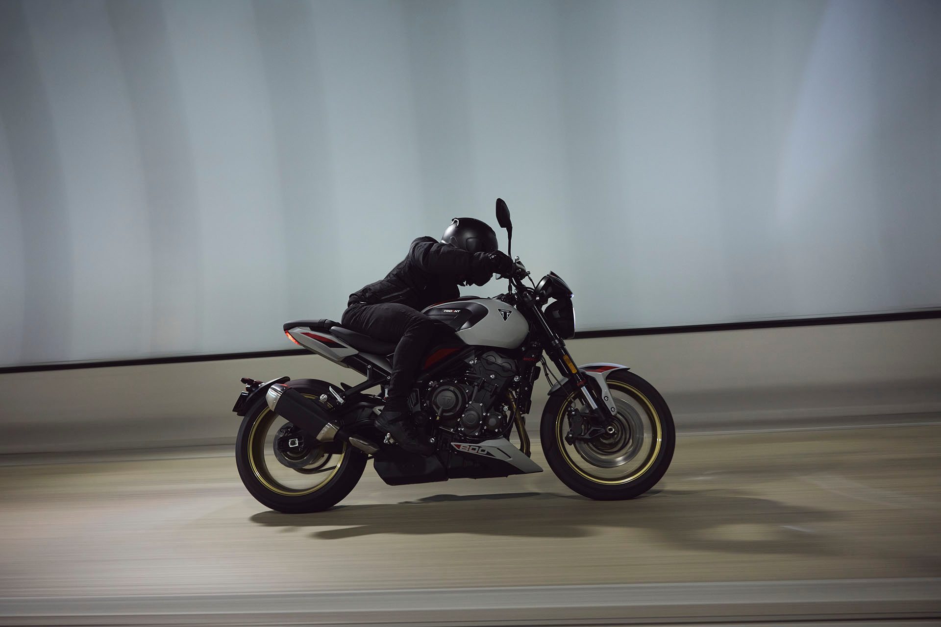 Despite its minimalist looks, the Trident 800 is loaded with advanced rider aids. It features three riding modes; Road, Sport and Rain that adjust throttle response and traction control to suit the conditions. Triumph’s latest lean-sensitive Optimised Cornering ABS and Cornering Traction Control use real-time data to maintain stability through bends.